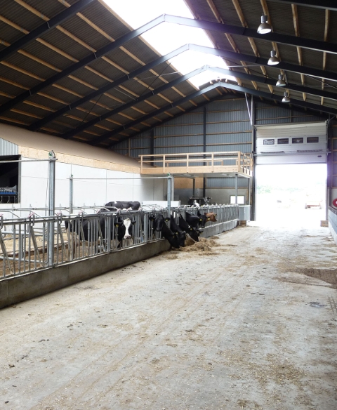 Gråkjær har i totalentreprise opført kvægstald for Esben Holm i Rønne. Byggeriet er på 5.400 m2 og indeholder: