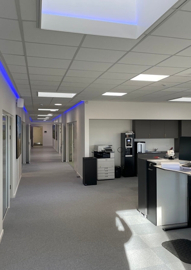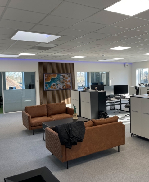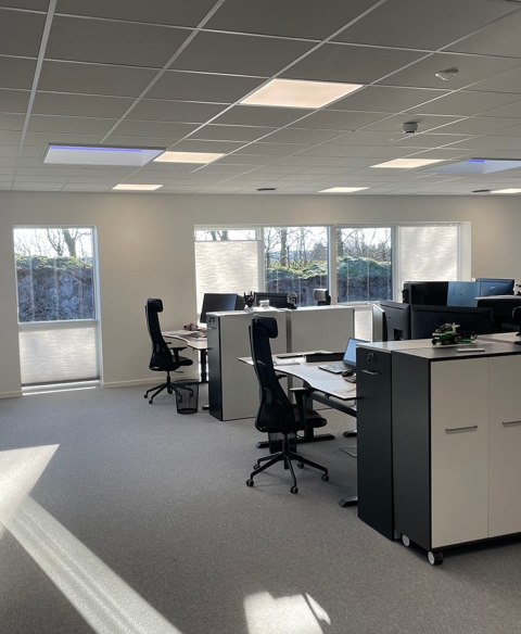 Kontorbygningen er opført med intelligent ventilation med VAV-zoner, der måler på luftens kvalitet i de enkelte rum samt sikrer et godt indeklima. Store vinduespartier og ovenlys er etableret for at skabe et naturligt lysindfald og arbejdsmiljø. For at sætte et personligt præg på bygningen er der installeret farveregulerbar LED-belysning både ind- og udvendigt.