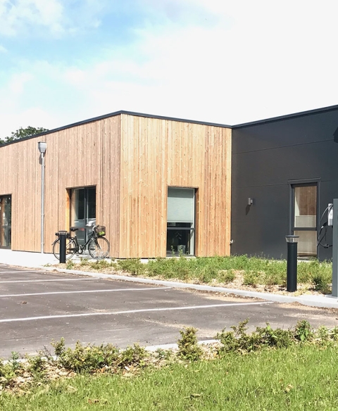 Projektet er opført i sandwichpaneler med isolering af mineraluld monteret på stålspær. Dele af bygningen er beklædt med naturfarvet ThermoWood for at give bygningen variation i facadeudtrykket.