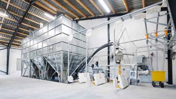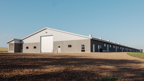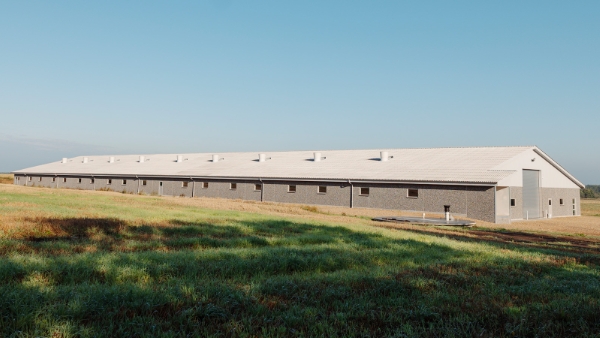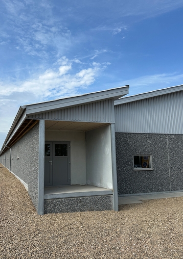 Byggeriet er opført i sandwichelementer med tag i trægitterspær, mens foderladen er med stålspær.