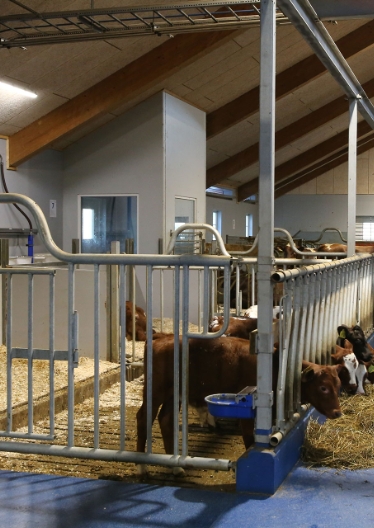 Stalden er opført med bærende konstruktion i limtræ og trævægge samt akustikplader af træbeton i loftet. Osteafdelingen er bygget med trævægge og bindingsværk.