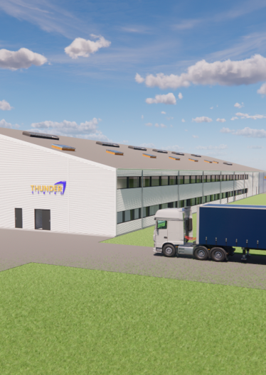 Den nye bygning vil bl.a. omfatte kontor-, lager- og montagefaciliteter og vil have et samlet areal på 5.300 m² inklusiv en sammenbygning med den eksisterende hangar. Bygningen opføres med lyse betonsandwichelementer monteret på en bærende stålkonstruktion med en facadehøjde på 6 meter.